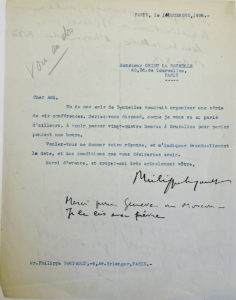 SOUPAULT Philippe — Lettre tapuscrite signée, avec complément manuscrit et datée du 10 décembre 1928. — Le poète et co-fondateur du surréalisme invite Drieu la Rochelle à une conférence à Bruxelles et le remercie de l'envoi de Genève ou...