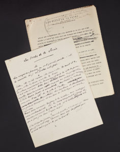LES BORDS DE LA SEINE. — Manuscrit de 5 pages in-4 d'une ébauche, doublé d'un tapuscrit corrigé de 5 pages in-4 et complété de 4 pages in-4 manuscrites de ce texte paru dans les années 30.