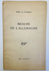 MESURE DE L'ALLEMAGNE. — NRF Paris 1934. — Tiré à part de la revue de la NRF (moins de 50 exemplaires). — Plaquette in-8, couverture poussiéreuse.