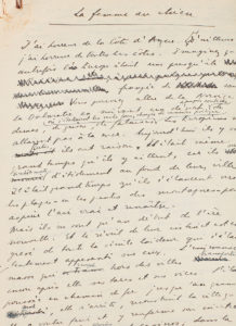 LA FEMME AU CHIEN. — Manuscrit autographe signé et complet de sa nouvelle publiée dans le recueil Journal d'un homme trompé (Gallimard 1934). — 16 pages in-4, nombreuses ratures et corrections, quelques retraits et béquets.
