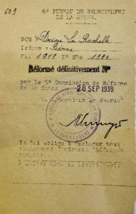 ATTESTATION DE ÉEFORME DÉFINITIVE LE 28 SEPTEMBRE 1939. — Récépissé du document émis par le bureau de recrutement de la Seine.
