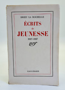 ÉCRITS DE JEUNESSE 1917-1927. — Gallimard Paris 1941. — Édition revue et corrigée. — Exemplaire du service de presse (pas de grand papier). — Broché in-12, Petits accrocs en coiffe et en queue de dos, sans manque.