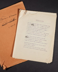 POÈMES D'AMOUR. — Tapuscrit complet de 26 pages in-4 avec corrections manuscrites de cette première partie de Plaintes contre inconnue (publié chez l'éditeur Chambriand en 1951 et interdit par la famille à sa sortie).
