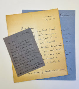 Jointes deux lettres autographes signées de l'épouse de Otto Abetz datées de 1941. Elle donne des nouvelles de son mari qui se trouve sur le front de l'Est. Deux pages in-8 recto verso.