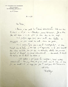 DELTEIL Joseph — Lettre autographe signée et adressée le 26 novembre 1939. — Réagissant à une phrase de Drieu qui considérait que « personne n'osa parler de l'armée internationale » il lui confirme que lui en a régulièrement parlé dans...