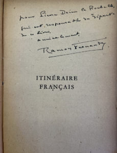 FERNANDEZ Ramon — Ensemble de 3 ouvrages, tous dédicacés à Drieu la Rochelle. — Brochés in-12 ou in-8, en S.P, état moyen : Balzac / Itinéraire français / De la personnalité.