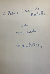 (POÉSIE) — Ensemble de 8 ouvrages, tous dédicacés à Pierre Drieu la Rochelle. — E.O. en S.P., brochés in-12 ou plaquette, état moyen : Maurice FOMBEURE : D'amour et d'aventure / Chansons du sommeil léger / Arentelles ; Jean FOLLAIN :...