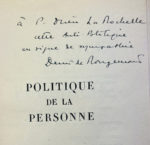 ENSEMBLE DE 10 OUVRAGES tous dédicacés à Pierre Drieu la Rochelle. — Brochés in-12 ou in-8, mauvais état, la plupart en S.P. :