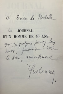 ENSEMBLE DE 7 OUVRAGES tous dédicacés à Pierre Drieu la Rochelle. — Brochés in-12 ou in-8, mauvais état, la plupart en S.P. : Jeanine MOULIN : Les chimères de Gérard de NERVAL / Charles BRAIBANT :