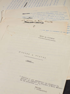 L'HOMME À CHEVAL. — Tapuscrit complet de 242 pages in-8, numérotées, avec corrections manuscrites et quelques retraits. — Manque une page dans la partie III, sinon bel ensemble pour les dernières retouches sur ce roman.