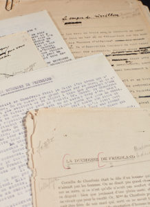 LA DUCHESSE DE FRIEDLAND : tapuscrit de 8 pages in-8 recto-verso, avec corrections manuscrites, ratures, ajouts en marge, dernières retouches avant publication dans la Nouvelle Revue Française, joint un tapuscrit de 8 pages in-4.