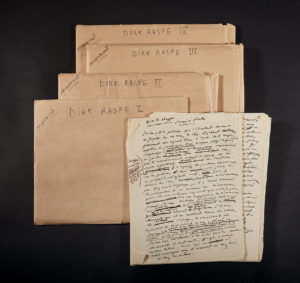 MÉMOIRES DE DIRK RASPE. — Manuscrit complet des quatre premières parties de ce roman inachevé, puisqu'il avait annoncé que d'autres suivraient, publié chez Gallimard en 1966. — 358 pages à l'écriture fluide, quelques ratures et retraits...