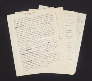 PARC MONCEAU. — Manuscrit autographe de ce texte publié après les Notes pour un roman sur la sexualité (Gallimard 2008). — 6 pages in-4, quelques ratures et corrections en marge.