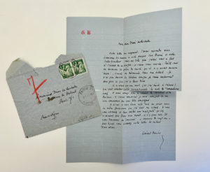 BAUER Gérard — Lettre autographe signée avec enveloppe (lettre coupée en deux avec enveloppe tamponnée du 19 janvier 40). — Lettre de rupture intellectuelle après que Drieu a reproché à Bauer une chronique où il qualifiait les écrits de...