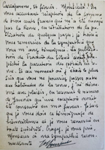 BOUSQUET Joé — Carte autographe signée et adressée de Carcassonne le 16 février 1942.
