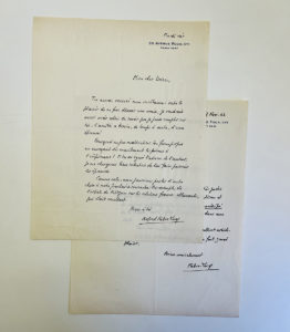 FABRE-LUCE Alfred — 2 lettres autographes signées. Il lui demande de l'aide pour une amie et le complimente pour ses écrits.