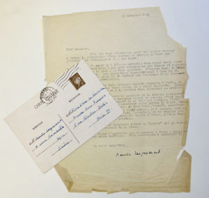 JACQUEMONT Maurice — Une lettre tapuscrite signée et datée du 26 novembre 1941 et une carte postale autographe signée et datée du 30 janvier 1942.