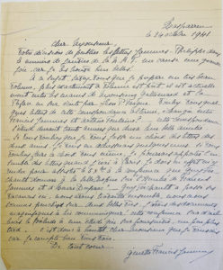 JAMMES Ginette Francis — Lettre autographe signée de la veuve de Francis Jammes et adressée le 24 octobre 1941.