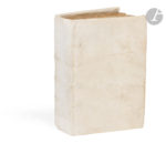 Reliure de plein vélin rigide, dos à 5 nerfs, contre-garde supérieure décollée. Dimensions des feuillets: 198x132 mm; dimensions de la reliure: 210x135 mm