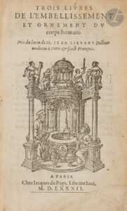 LIÉBAUT (Jean). — Trois livres de l’embellissement et ornement du corps humain. — Paris : Jacques Du Puis, 1582. —In-8, 155x98 : (8 ff.), 463 pp., (7 ff.).