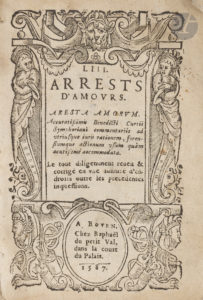 MARTIAL D’AUVERGNE. — LIII arrest d’amours. — Rouen : Raphaël Du Petit Val, 1587. — In-16, 117x79 : 899 pp., (30 ff. dernier blanc).