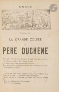 [COMMUNE]. — Le Père Duchène. — Paris : imprimerie Sornet, 16 ventôse an 79 [6 mars 1871] au 2 prairial an 79 [22 mai 1871]. — 68 numéros reliés en un volume in-8, 233x160.