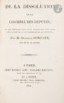 - De la dissolution de la chambre des députés, et des résultats que cette dissolution peut avoir pour la nation, le gouvernement et le ministère. Paris: Béchet aîné; Rouen: Béchet fils, 1820. — In-8, 200x130: (2 ff.), 67 pp.