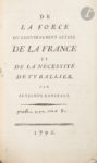 - De la force du gouvernement actuel de la France et de la nécessité de s’y rallier. S.l., 1796. — In-8, 197x120: 111 pp.