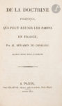 - De la doctrine politique, qui peut réunir les partis en France. Paris: Delaunay, janvier 1817. — In-8, 193x125: 43 pp., (1 f.).