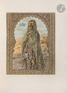 DINET (Étienne). — Antar. — Poème héroïque arabe d’après la traduction de Marcel Devic. — Paris : H. Piazza, 1898. — In-4, 324x244 : (5 ff.), 44 pp., (2 ff.), pp. 45-106, (2 ff.), pp. 107-125, (4 ff. dernier blanc), couverture illustrée.