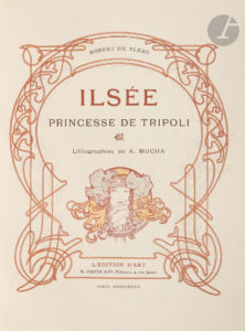 FLERS (Robert de) - MUCHA (Alphonse). — Ilsée princesse de Tripoli. — Paris : H. Piazza & Cie, 1897. — In-4, 322x247: (5 ff. premier blanc), 52 pp., (2 ff.), pp. 53-94, (2 ff.), pp. 95-128, (5 ff. dernier blanc), couverture illustrée.