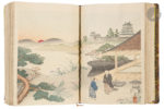 Belle et célèbre édition imprimée à Tokyo sur papier crépon japonais, de ce choix de 28 fables de Florian, illustrée de nombreuses compositions, dont 30 en couleurs (2 sur les couvertures et 28 sur double page) de trois artistes peintres japonais: Tomonobu Kanō (1843-1912), Hanko Kajita (1870-1917) et Tösui Kabuta (1841-1911).