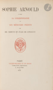 GONCOURT (Edmond et Jules de). — Sophie Arnould d’après sa correspondance et ses mémoires inédits. — Paris : Poulet-Malassis et de Broise, 1857. — In-12, 195x120 : (2 ff.), 197 pp., (1 f.), couverture imprimée.