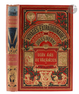 VERNE (Jules). — Deux ans de vacances. — Paris : Bibliothèque d’éducation et de récréation, J. Hetzel et Cie, [vers 1914]. —In-8 double, 269x179 : (4 ff.), 472 pp., 6 planches, 1 carte.
