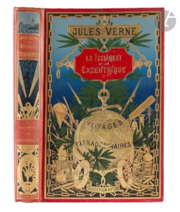 VERNE (Jules). — Le Testament d’un excentrique. — Paris : Collection Hetzel. J. Hetzel et Cie, [1899]. —In-8 double, 271x177 : (2 ff.), 479 pp., 8 pp. de cat., 21 planches, 1 carte.