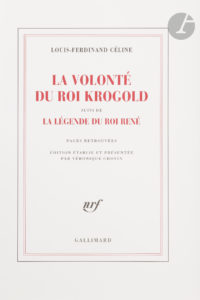 CÉLINE (Louis-Ferdinand). — La Volonté du roi Krogold suivi de La Légende du roi René. — Pages retrouvées. — Édition établie et présentée par Véronique Chovin. — Paris : Gallimard, [2023]. — In-8, 215x145 : 313 pp., (3 ff.),...