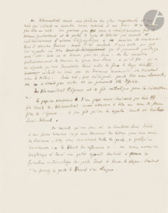 - Histoire drôle, 1/2 page in-8: «On jouait au bridge chez Mme Lapisse devenue Comtesse d’Obidos. L’un dit: je passe. L’autre: je passe. Un autre: je passe. Je pisse dit le quatrième.»
