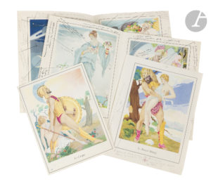 Un des 500 premiers exemplaires sur vélin de luxe, enrichis de deux suites avant la lettre des compositions à pleine page, dont une en couleurs et une en un ton.