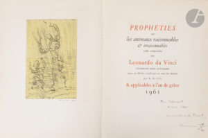 ERNST (Max) - LÉONARD DE VINCI. — Prophéties sur les animaux raisonnables & irraisonnables jadis composées par Leonardo da Vinci récemment mises en français dans un Ordre conforme au vœu du Maître par A. de Latis & applicables à l’an de...