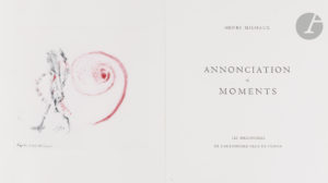 WOU-KI (Zao) - MICHAUX (Henri). — Annonciations. — Moments. — Paris : Les Bibliophiles de l’automobile club de France, [1996]. —In-folio, 344x304 : (40 ff. 2 premiers et 2 derniers blancs), couverture imprimée.