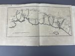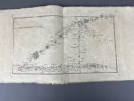 Ogée Jean-Baptiste Atlas itinéraire de Bretagne, contenant les cartes particulières de tous les grands chemins de cette province avec tous les objets remarquables qui se rencontrent à une demi-lieu a droite et a gauche. Paris, chez Merlin libraire, 1769. 1 volume broché in-4° sous couverture grise d'attente. Dos défraîchi avec petit manque de papier. Errata collé sur le premier contreplat en regard du titre. Collationné et complet. Contient la carte générale de la Bretagne suivie de 20 cartes numérotées de 1 à 20. Bon exemplaire à toutes marges, cartes montées sur onglet, papier uniformément bruni.