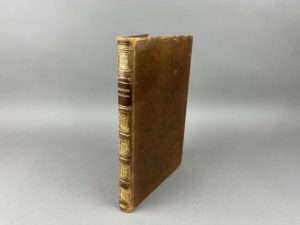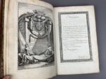 Ozanne Nicolas-Pierre Marine militaire ou recueil des differens vaisseaux qui servent à la guerre suivis des Manœuvres qui ont le plus de raport au combat ainsi qu'a l'ataque et la defense des ports. Paris, S.E., S.D. (1762). 1 volume in-8°, reliure XIXème en plein veau raciné, dos à nerfs avec fleurons dorés, pièces de titres en maroquin havane. Frottements d'usage en coins et le long des mors. Reliure dans le goût du XVIIIème siècle. Collationné et complet : un titre gravé suivi de 50 planches hors-texte, gravées en taille douce. Restauration sur le titre en marge haute avec du papier ancien. Une mouillure sur les planches 25 et 26. Deux petits pavillons ont été coloriés. Ouvrage peu courant.