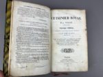Viart Alexandre Le cuisinier royal. Paris chez Gustave Barba, 1838. Seizième édition. 1 volume in-8°, reliure moderne en demi-maroquin à long grains vert empire et à coins. Dos lisse avec filets dorés, auteur, date et titre dorés. Reliure très décorative signée Lavaux. Les anciennes gardes ont été gardées. Collationné et complet, 4 ff., 616 pp, intérieur modeste avec quelques restaurations de papier en angles, papier fin avec de nombreuses rousseurs et d’anciennes cornes. 16ème édition de ce recueil de recettes, très souvent réédité au XIXème siècle. Initialement paru en 1806 en tant que « Cuisinier impérial », il deviendra « royal » en 1817, « national » en 1852, puis de nouveau « impérial » en 1854. Le nom de Viart s’écrivait Viard jusqu’en 1837 (Vicaire 860) ; « un des livres de recettes les plus fameux du XIXème siècle », Oberlé 168.