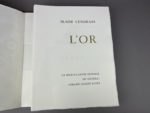 Cendrars Blaise - Ramondot Jacques L'or, La merveilleuse histoire du général Johann August Suter. Les Médecins bibliophiles, Paris, 1969. 1 volume grand in-4° en feuilles sous couverture rempliée, chemise et étui en carton. Exemplaire orné de 26 eaux-fortes de Jacques Ramondot. Exemplaire n° 95/120 sur papier vélin de Rives. Exemplaire très propre sans aucune rousseur.
