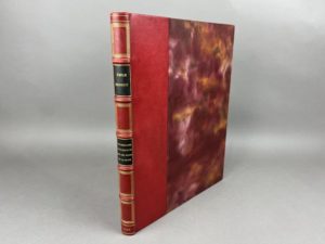 Henriot Emile - Veder Eugène Promenades pittoresques sur les bords de la Seine. Editions Léo Delteil, Paris, 1926. 1 volume grand in-4°, reliure en demi-chagrin rouge. Dos à nerfs avec pièce de titre en maroquin noir. Date dorée en pied, tête dorée. Couverture conservée. Petits frottements aux coins. Exemplaire n°100/252 sur vélin d'Arches, contenant un état du frontispice, 2 eaux-fortes et le tirage à part du bois. Bel exemplaire sans rousseur.