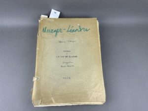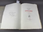 Mürger Henry - Léandre Charles Scènes de la vie de bohème. Paris, librairie de la collection des dix, chez Romagnol, 1902. 1 fort volume grand in-4° à toutes marges non rognées, en feuilles et sans couverture. Edition ornée de 40 compositions de Charles Léandre, gravées sur métal et tirées en couleurs, dont 11 hors-textes. Volume très propre, légèrement bruni sur les témoins ; exemplaire sur vélin d'Arches à relier. Envoi autographe signé de Romagnol à Lucien Gougy.