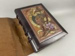 Poe Edgar - Van Maele Martin Dix contes. Dorbon Ainé, Paris, 1913. 1 volume in-8°, très belle et très importante reliure en plein maroquin grenat. Cuir incisé sur les deux plats avec incrustation à motifs de gorille, serpent, scarabée et chardon. Intérieur des plats bordé de maroquin rouge et grenat. Toutes tranches dorées sur témoins. Chemise de protection en maroquin avec étui bordé. Le travail sur les deux plats ainsi que la reliure sont signés Charles Meunier en incision dans le cuir. Ouvrage très propre sans rousseur. Exemplaire sur vieux Japon imprimé spécialement pour Monsieur Charles Meunier renfermant trois états sur toutes les planches. Couverture conservée ainsi que le feuillet de souscription.