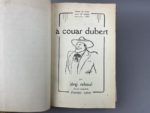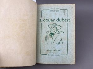 Reboul Georges (Reboul Jorgi) Recueil de plusieurs ouvrages réunis en 1 volume imprimés dans le sud (Marseille, Toulon, Aigues-Vives etc..) chez différents éditeurs autour des années 1930. 1 volume in-8°, relié en plein chagrin chocolat, dos à nerfs avec auteur et titre dorés, légères traces bleutées sur les plats. Ce volume contient uniquement des textes en provençal, environ 4 recueils de poésies avec envoi de Jorgi Reboul à Louis Bayle, une vingtaine de feuillets manuscrits, autant de feuillets dactylographiés, 6 cartes postales, toutes adressées à Louis Bayle et signées Jorgi Reboul. Exemplaire de Louis Bayle, son ami et grand provencialiste français, professeur de littérature et de provençal à Toulon, défenseur de cette langue, rédacteur en chef de revue, auteur lui-même d'ouvrages en prose ou en vers. Rare ensemble bien relié de petits tirages de poésies provençales datant des années 1930.