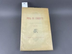 Renard Jules - Lobel-Riche Poil de carotte. A Paris, Librairie de la collection des dix, Romagnol Editeur, 1911. 1 volume broché grand in-8°, couverture rempliée. Exemplaire très propre sans rousseur, déchirures sur la couverture, sans manque. Edition ornée de compositions et gravures originales de Lobel Riche. Exemplaire imprimé pour Monsieur Goujy.