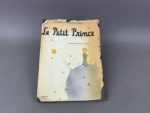 Saint-Exupéry (Antoine de) Le Petit prince. Paris, Gallimard, imprimerie Paul Dupont, 30 novembre 1945. 1 volume in-4°, cartonnage éditeur, pleine toile bleue. Titre et dessin de l'auteur en rouge sur le premier plat. Dos insolé ainsi que les plats sur un tiers. Jaquette existante mais très défraîchie, manque le dos. Une petite mouillure angulaire dans le coin droit sur les 5 premier feuillets. PREMIERE EDITION française, après l'originale éditée à New-York en 1943. L’édition globale à cette date fut de 12750 exemplaires dont 300 hors commerce numéroté en chiffre romains, dont celui-ci qui porte le numéro LX. Rare et très recherché.